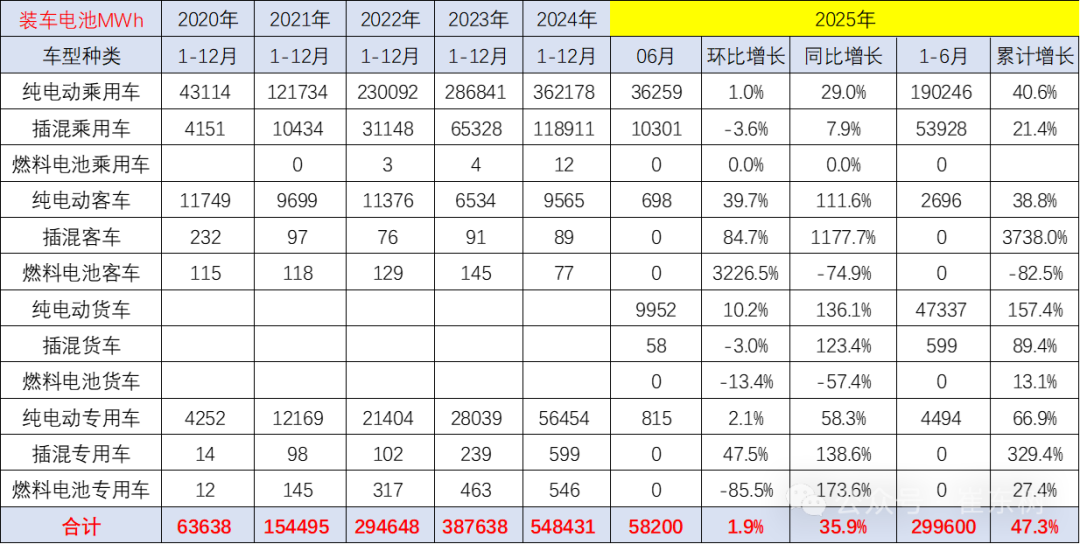 2025年6月的电池装车增长达到36%,其中商用车增长较强,尤其是6月的纯电动货车猛涨136%,而纯电动客车增长112%。
