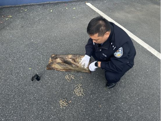 接警后民警迅速赶到现场,经统计,袋内装有手枪子弹、步枪子弹等各类弹药,经清点总计108发。部分子弹表面虽附着水锈,但弹体完整仍具备一定危险性,结合外观特征疑似为历史遗留弹药。